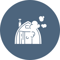 С другой стороны дома расположена баня. Она состоит из трех помещений: большая парная, большая зона мойки с обливным устройством и комфортная зона отдыха.